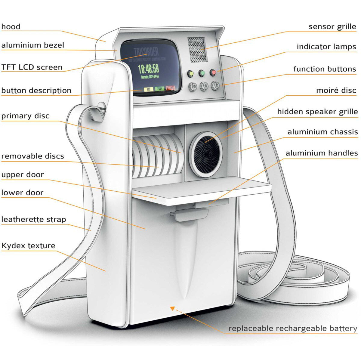Dieser Tricorder ist kein Spielzeug, sondern eine funktionstüchtige Nachbildung, die entwickelt wurde, um ihrem Besitzer ein Höchstmaß an Freude zu bereiten. Der Tricorder wurde anhand von extrem genauen 3D-Scans eines der letzten verbliebenen Requisiten aus der Original-Fernsehserie der 1960er Jahre entworfen. Die Liebe zum Detail und die Verwendung authentischer Materialien, Texturen und Oberflächen haben zu einem voll funktionsfähigen, vorzeigbaren Produkt geführt, das der Originalrequisite sehr nahe kommt.