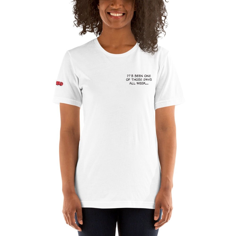 Cling on to hopes of better days with this Garfield One Of Those Days Adult Short Sleeve T-Shirt. Perfect for weeks when you need a little sarcasm, this shirt is a hilarious and relatable way to make light of less than ideal situations.